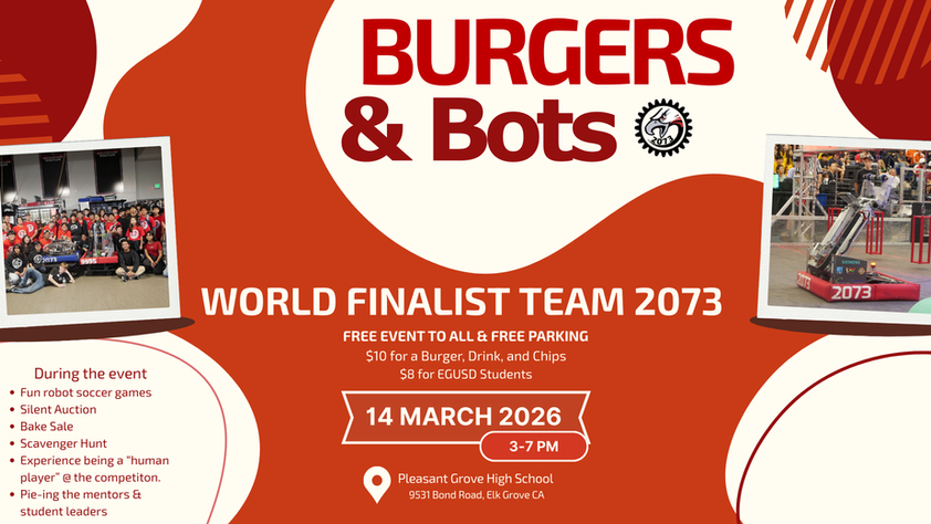 Attend our event Burgers and Bots! A Chance to see our winning robot in action, play some fun games, and do a scavenger hunt (with a prize).